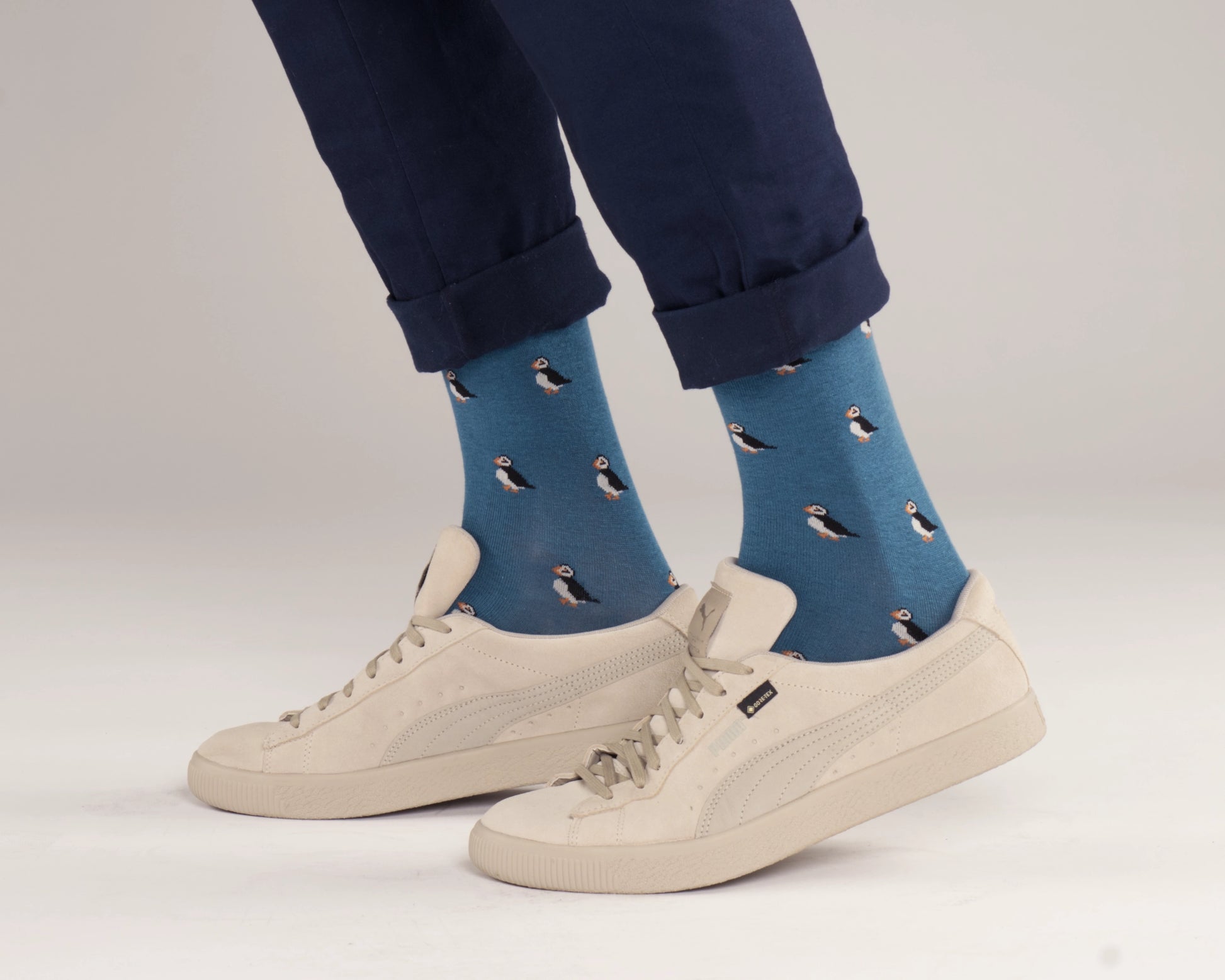 Take flight with these charming puffin socks, bringing the whimsical spirit of seabirds to your every step. The wee puffins will add a playful touch of coastal adventure to your wardrobe.
